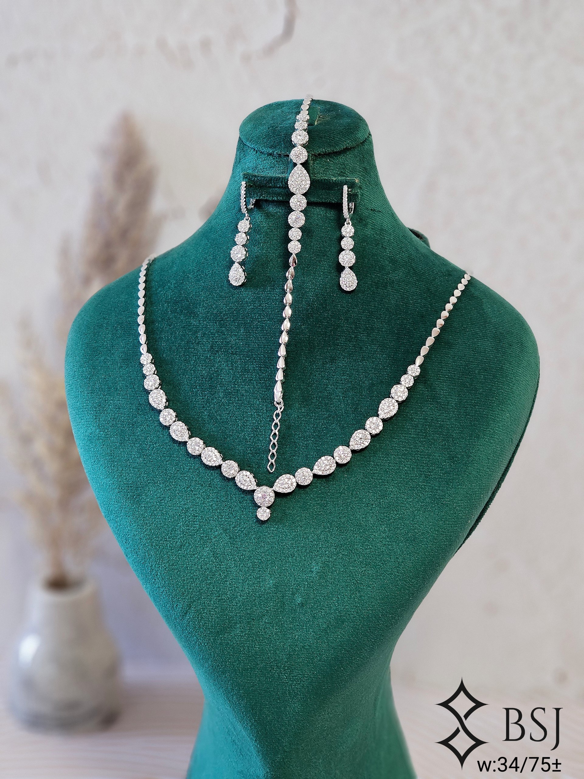 سرویس جواهری نقره با عیار 925 همراه سه مرحله آبکاری طلا سفید و رادیوم لطفا بعد از ثبت سفارش حتما با شماره تلفن 09028244216
